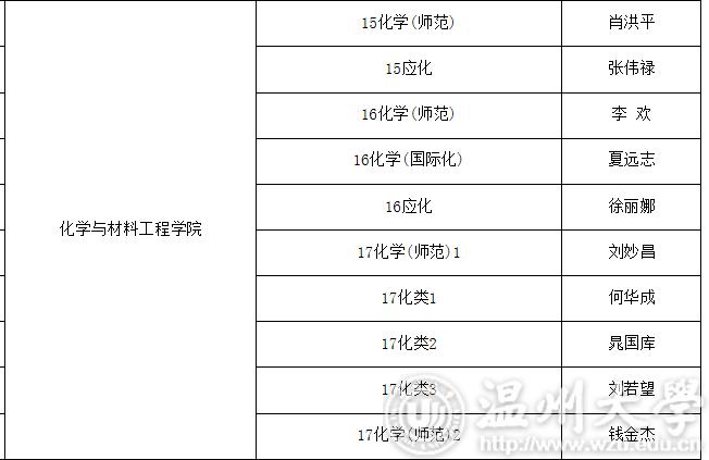 注:将从院级优良学风班获奖名单中推选1-2个到校级优良学风班评比,校级优良学风班将从去年立项班级中按照评选结果名次的先后依次推荐,详见温州大学2017/2018学年“优良学风班”创建拟立项班级名单:
