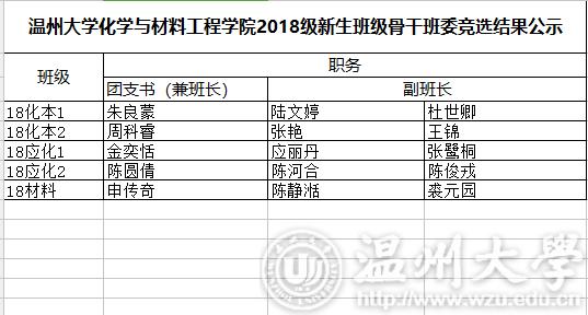 温州大学新澳门六合彩资料 2018级新生班级骨干班委竞选结果公示